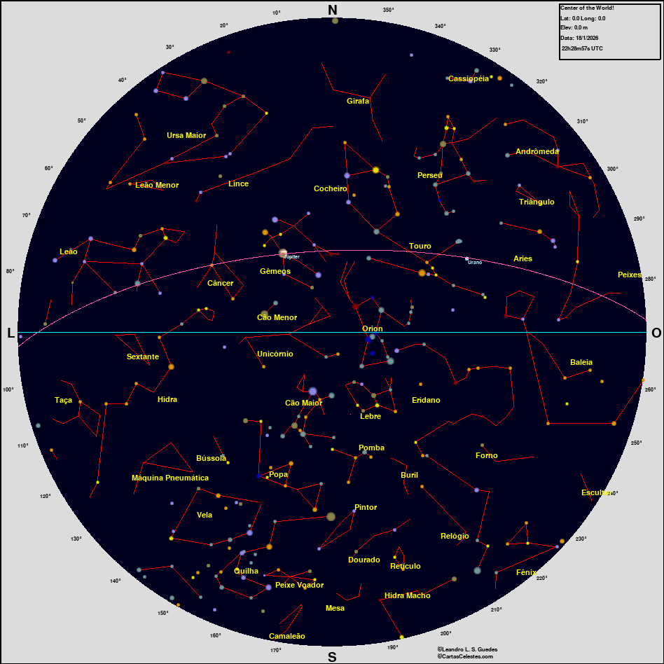 Neste site você encontra todas as informações necessárias para observar o céu, seja você um astrônomo amador, profissional ou um apaixonado pelo céu que está iniciando agora suas atividades na Astronomia. Esperamos que encontre tudo o que deseja para planejar uma noite de observação do céu, e para aprender sobre esse aspecto da natureza que fascina o homem desde seus primeiros passos nesse planeta. Bons Céus!