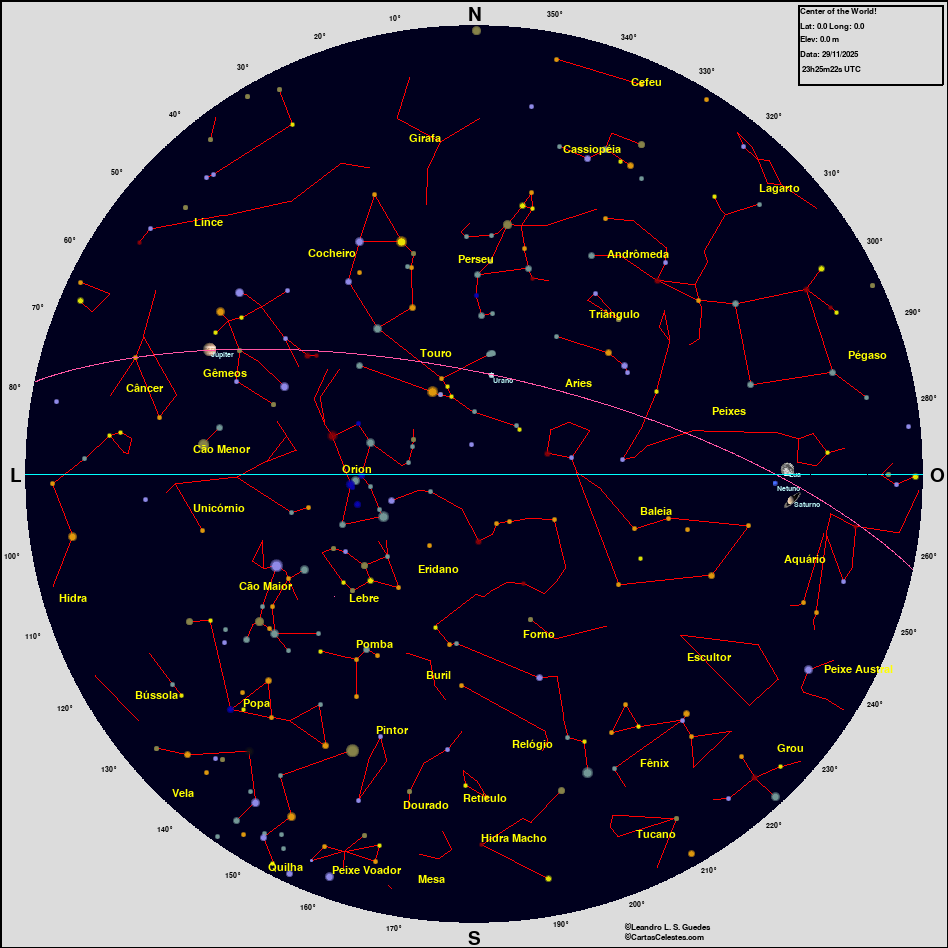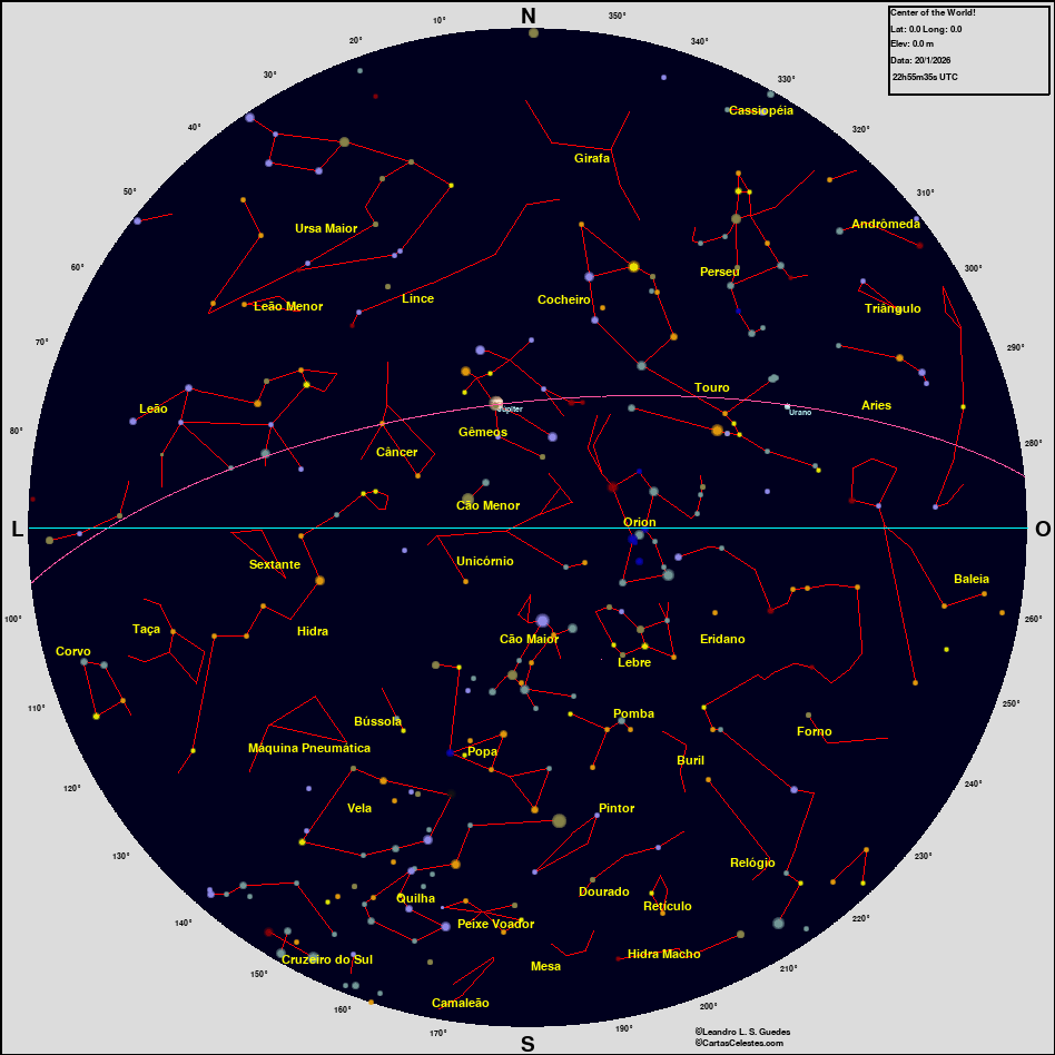 Neste site você encontra todas as informações necessárias para observar o céu, seja você um astrônomo amador, profissional ou um apaixonado pelo céu que está iniciando agora suas atividades na Astronomia. Esperamos que encontre tudo o que deseja para planejar uma noite de observação do céu, e para aprender sobre esse aspecto da natureza que fascina o homem desde seus primeiros passos nesse planeta. Bons Céus!